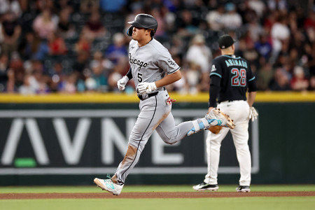 ホワイトソックスの村上はダイヤモンドバックス戦に3番一塁で出場し、7回に5試合連続本塁打となる10号2ランを放つなど、5打数3安打2打点だった。チームは7―11で敗れた=22日、フェニックス