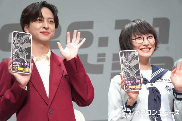 SUZUKA(新しい学校のリーダーズ)、原田泰造(ネプチューン)、寺西拓人(timelesz)が15日、都内で行われた『迷宮のしおり』アニメの聖地・池袋ゲリラ…
