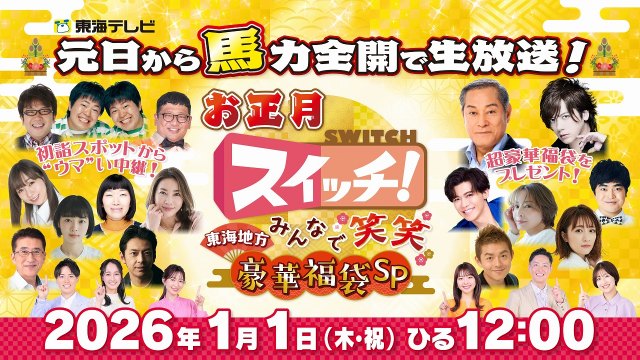 東海テレビは2026年元日、『お正月スイッチ! 東海地方みんなで笑笑 豪華福袋SP』(正午~後1:50 ※東海ローカル)を生放送する。情報番組『スイッチ!』…