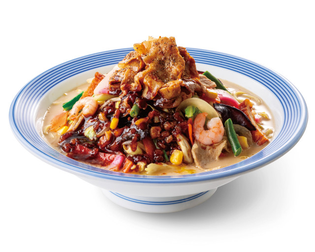 リンガーハット『野菜たっぷりちゃんぽん』を“魔改造” 背脂にんにく醤油×豪快豚しゃぶで背徳感MAX
