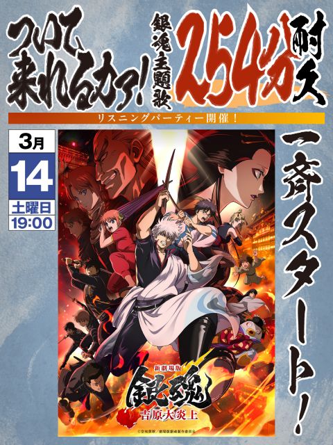 人気アニメ『銀魂』の完全新作映画『新劇場版 銀魂 -吉原大炎上-』(公開中)の公開を記念し、14日午後7時からアニメ『銀魂』/劇場版『銀魂』の歴代主題歌を集め…