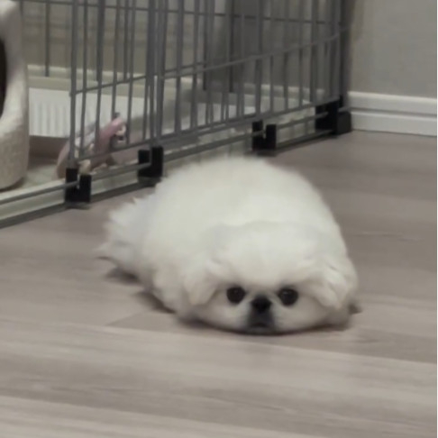 反省中のペキニーズがまさかの“ゴマフアザラシ化”「鼻セレブのパッケージやん!」「陸で生きるアザラシだ」