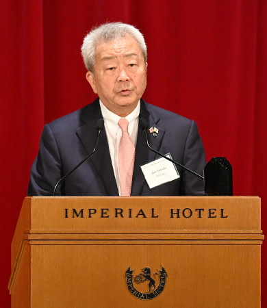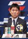 アウトドアブランド「マムート」の秋冬コレクション発表会に登壇し、氷柱でアイスクライミングに挑戦するブランドアンバサダーの岡田准一さん。「アンバサダーってこういうことするんでしたっけ?」と笑った=2日