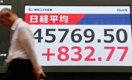 世界遺産「百舌鳥・古市古墳群」のうち、大山古墳(仁徳天皇陵古墳)を望むことができるガス気球の運航が4日、堺市で始まる。写真は記念式典で、テープカットした大阪府の吉村洋文知事(右から3人目)ら。