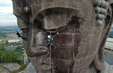 沖縄県南城市の古謝景春市長(70)は6日、自身のセクハラ問題を受けた市議会の不信任決議に対抗するため、議会を解散した。写真は、市議会の中村直哉議長(右)に解散通知を手渡す古謝市長=同日午前