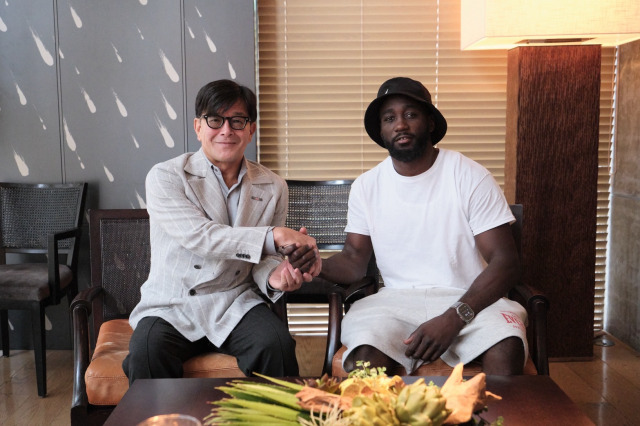 高さ120メートルの「牛久大仏」(茨城県牛久市)で6日、毎年恒例の清掃作業が行われた。メンテナンス用の穴から下がるロープを頼りに、作業員が高圧洗浄機とブラシでおでこや頬を洗い流した=小型無人機で撮影