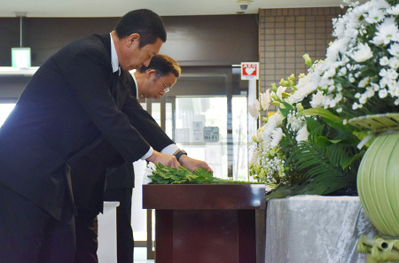 東京・JR有楽町駅前で、初めての薪割りに挑戦する子どもたち。林業の魅力や森林と共に暮らす生活を紹介するため、全国森林組合連合会が開催した=12日
