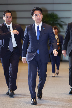 天皇陛下から任命を受ける高市早苗首相(右手前)。中央は石破茂前首相=21日午後、皇居・宮殿「松の間」(代表撮影)
