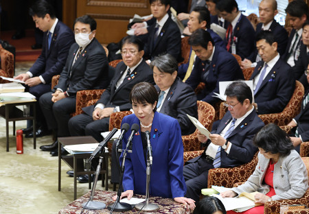 衆院予算委員会は7日午前、高市早苗首相と全閣僚が出席し、3日間の基本的質疑をスタートさせた。予算委の質疑は高市政権で初めて。写真は、自民党の斎藤健元経済産業相の質問に答える首相=国会内