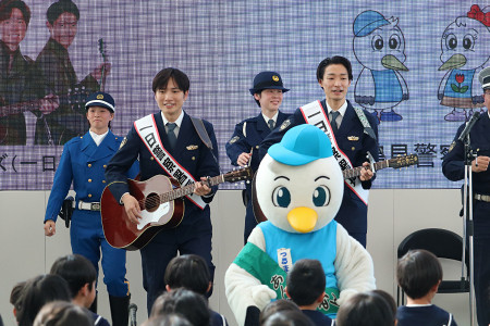 スペイン南東部アリカンテの広場で、巨大な像を見上げ写真に収める人々。「世界で最も大きなキリストの降誕場面の像」としてギネス世界記録に認定されており、聖母マリアの夫ヨセフの像は高さ約18メートルという。