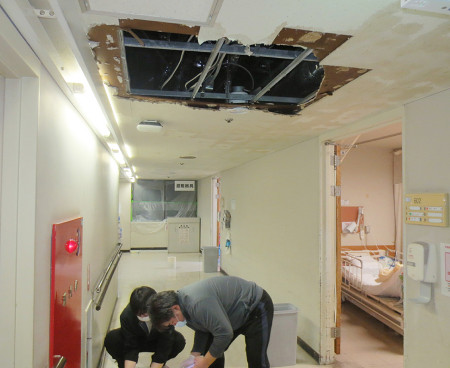 スプリンクラー壊れ床水浸し