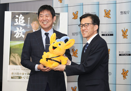 ピーポくん人形を贈呈された森保監督