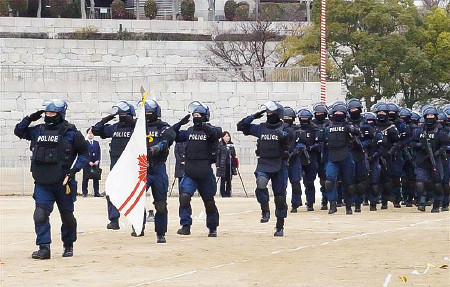 年頭視閲式で行進する機動隊