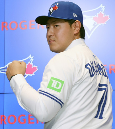ポーズを取る岡本 大リーグ