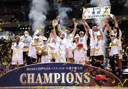 サッカーの第104回全国高校選手権は12日、東京・MUFGスタジアム(国立競技場)で決勝が行われ、神村学園(鹿児島)が鹿島学園(茨城)を3―0で下し、初優勝を遂げた。写真は喜ぶ神村学園の選手。