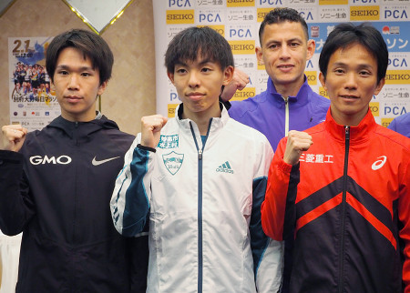 会見に臨む黒田ら