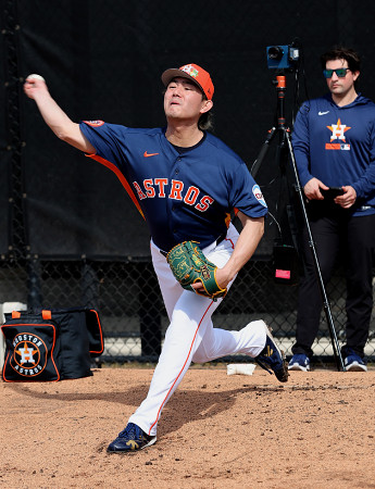 今井、ブルペンで16球 大リーグ