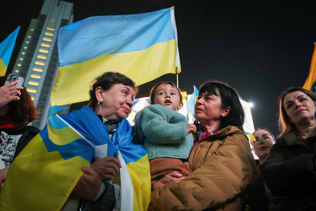 演説するゼレンスキー氏