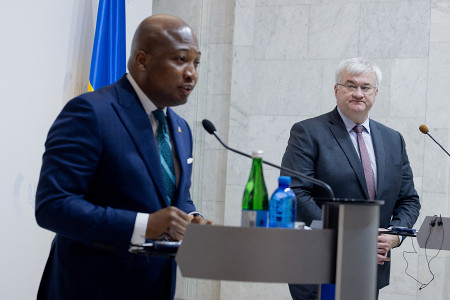 24日、米カリフォルニア州サンフランシスコで報道陣向けに先行公開された、韓国サムスン電子の新型スマートフォン「ギャラクシーS26」。日本では3月12日に発売する。