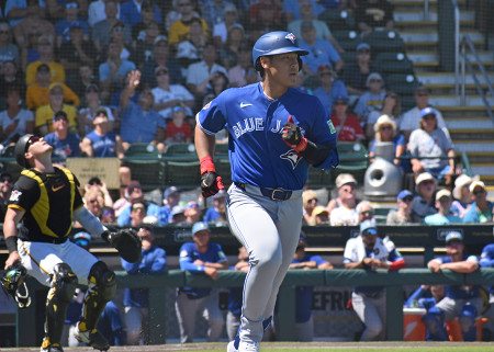 米大リーグのオープン戦は21日、フロリダ、アリゾナ両州で行われ、ブルージェイズの岡本はパイレーツ戦に7番三塁で出場し、3打数無安打、1三振だった=フロリダ州ブラデントン