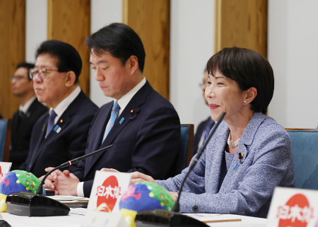 高市早苗首相は4月1日、フランスのマクロン大統領と東京都内で会談する。写真は首相官邸に入る高市首相=31日午前、東京・永田町
