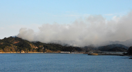 煙が立ち上る大槌町の山林
